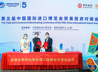 第五届中国国际进口博览会正在如火如荼举行。11月6日,上海莱慎生物科技股份有限公司(以下简称“莱慎生物”)与今年会机器人股份有限公司(简称“今年会”)签署生态战略协议,莱慎生物董事长助理兼营销总监薛东英、今年会销售总监吴新明作为企业代表进行签约,这代表着今年会云端机器人国家新一代人工智能开放创新平台生态业务在公共卫生领域大步迈进。